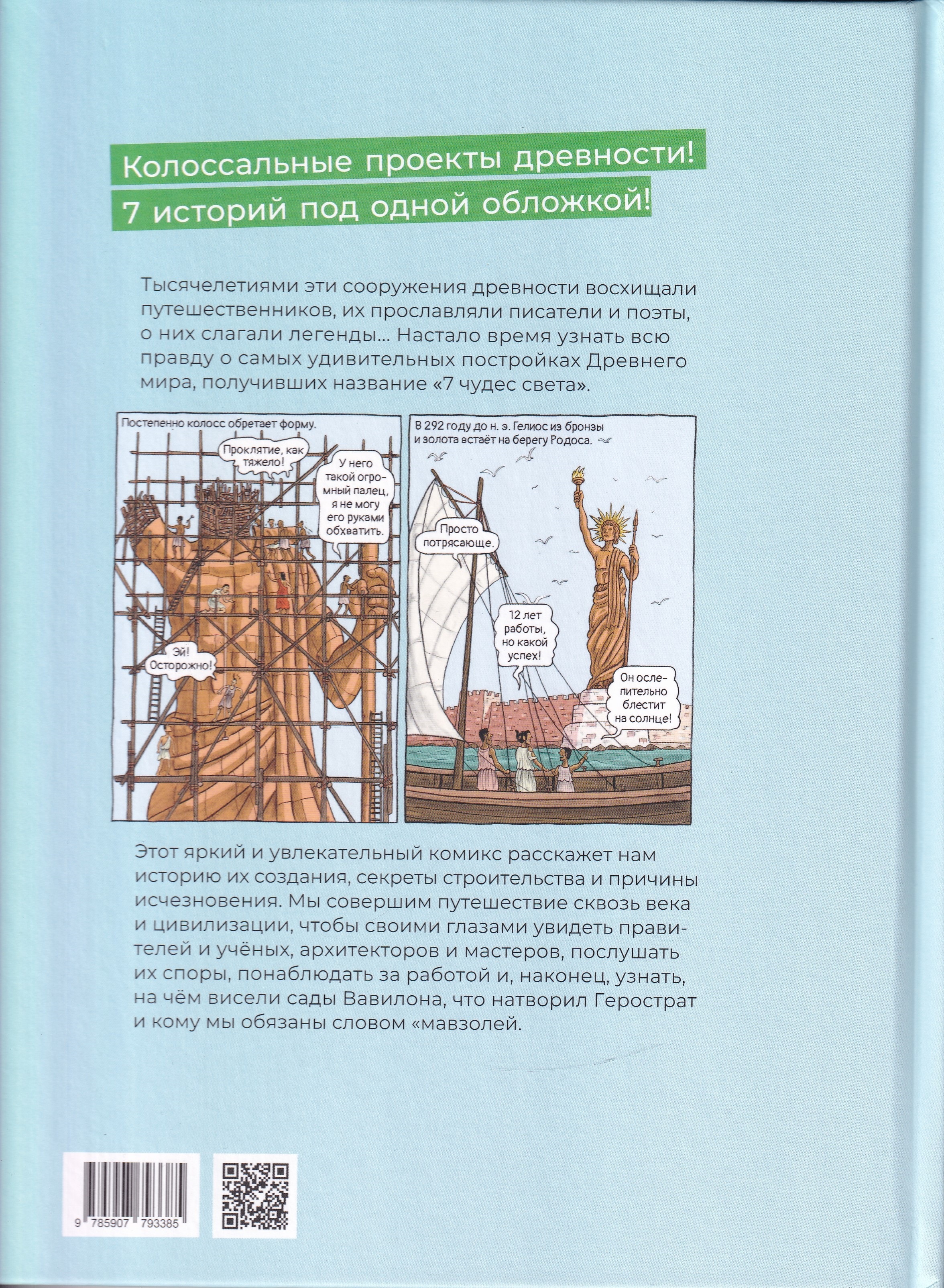 Этот яркий и увлекательный комикс расскажет нам историю их создания, секреты строительства и причины исчезновения. Мы совершим путешествие сквозь века и цивилизации, чтобы своими глазами увидеть правителей и учёных, архитекторов и мастеров, послушать их споры, понаблюдать за работой и, наконец, узнать, на чём висели сады Вавилона, что натворил Герострат и кому мы обязаны словом «мавзолей».