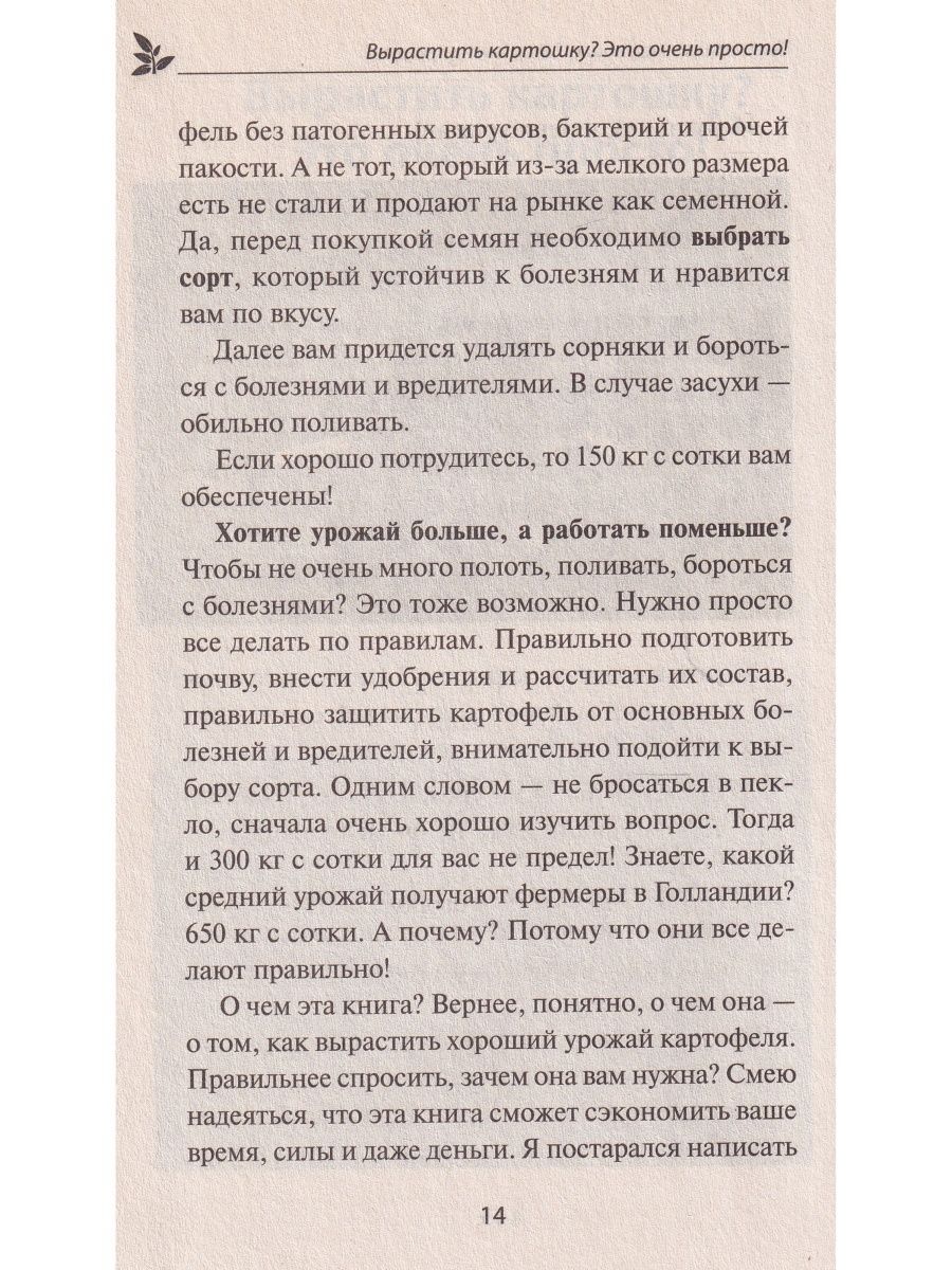 Мечта любого огородника - получить свою картошку, крупную, вкусную, без химии и, что совсем немаловажно, дешевую. Однако капризы погоды, дорогие удобрения, необходимость полоть, окучивать, копать превращают выращивание картошки в очень непростое занятие. Но существует метод, который гарантирует отличный урожай при минимальных усилиях! И этот метод стремительно набирает популярность, потому что реально "работает"! В этой книге Игорь Лядов собрал информацию, которая помогает ему каждый год собирать неизменно хороший урожай картофеля. При том, что автор книги человек занятой и времени работать на огороде у него нет. Способ выращивания картофеля "по Лядову" - это высокий урожай в любом климате при любой, даже не очень плодородной почве, картошка без прополок и окучивания, отсутствие болезней и вредителей, хорошая сохранность урожая. Эта книга поможет вам максимально быстро овладеть уникальной методикой Игоря Лядова и применять ее не только для картофеля, но и для других овощных культур.