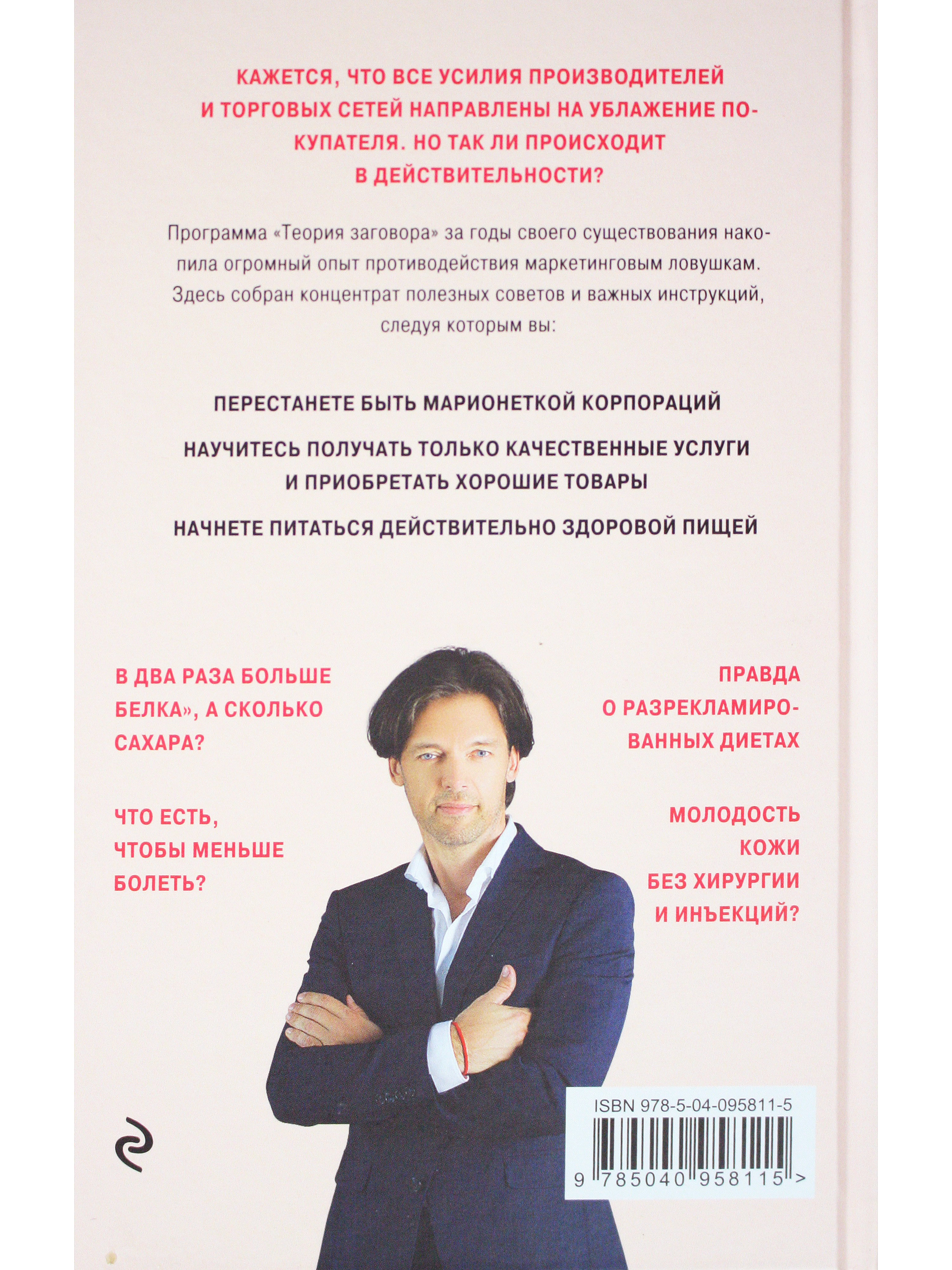 Программа "Теория заговора" на Первом канале за годы своего существования накопила огромный опыт противодействия маркетинговым ловушкам. Здесь собран концентрат полезных советов и важных инструкций, следуя которым, вы: перестанете быть марионеткой корпораций, научитесь получать только качественные услуги и приобретать хорошие товары, начнете питаться действительно здоровой пищей!