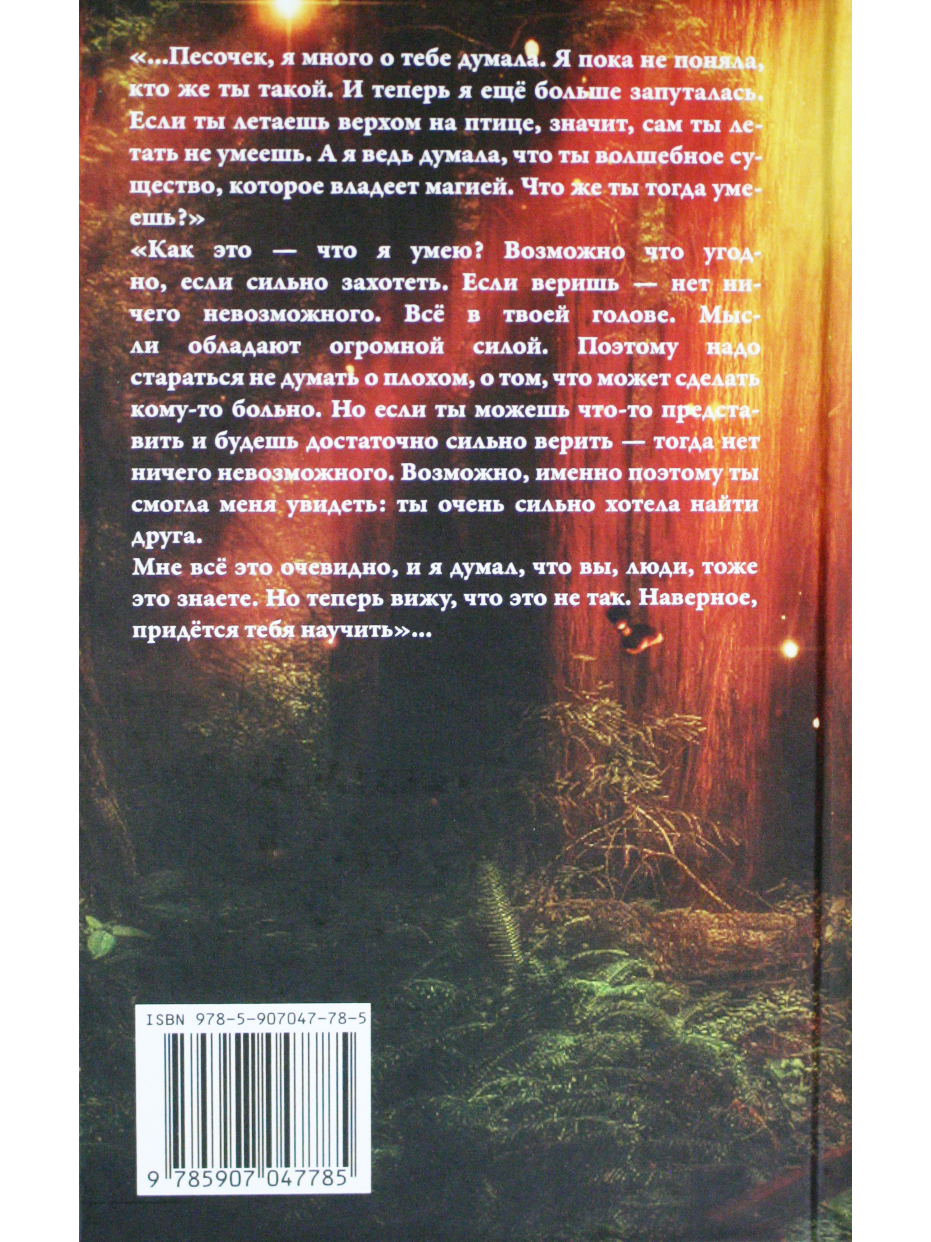 «...Песочек, я много о тебе думала. Я пока не поняла, кто же ты такой. И теперь я ещё больше запуталась. Если ты летаешь верхом на птице, значит, сам ты летать не умеешь. А я ведь думала, что ты волшебное существо, которое владеет магией. Что же ты тогда умеешь?»