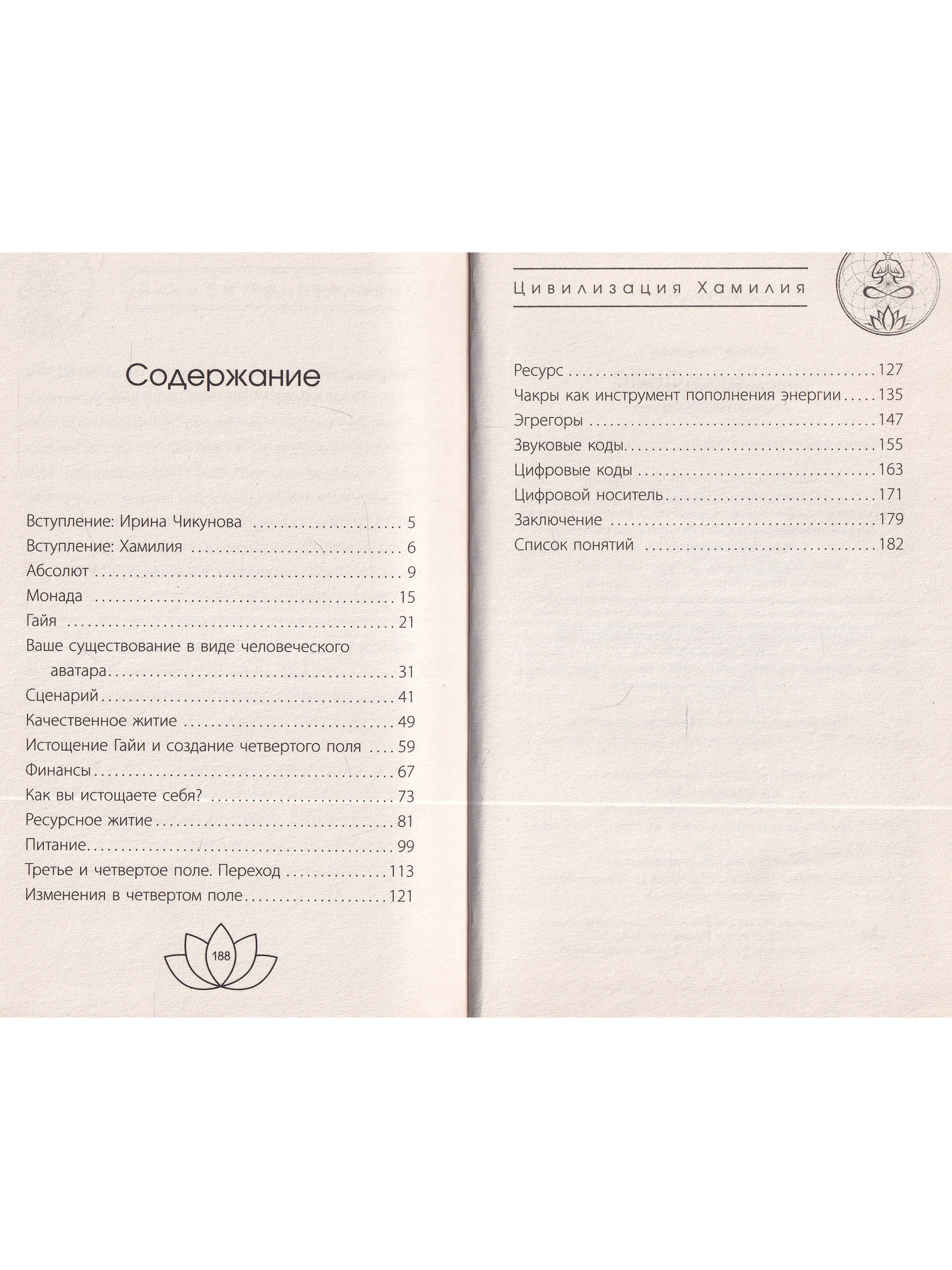 Ирина Чикунова — контактер. Она принимает информацию посредством ченнелинга — взаимодействия с высоковибрационными формами сознания, которые передают информацию через звуковые вибрации. Для большинства людей такого рода вибрации воспринимаются как звуковой ряд — это и есть галактический язык. Ирина транслирует и дает расшифровку на русском языке посланий и информации от высшей формы сознания галактического уровня — Цивилизации Хамилия. Из книги "Цивилизация Хамилия. Устройство Абсолюта" вы узнаете, как поменять систему питания, каким образом работать с энергоресурсным состоянием, для того чтобы быть в активной форме и улучшить систему состояния вашей жизни.