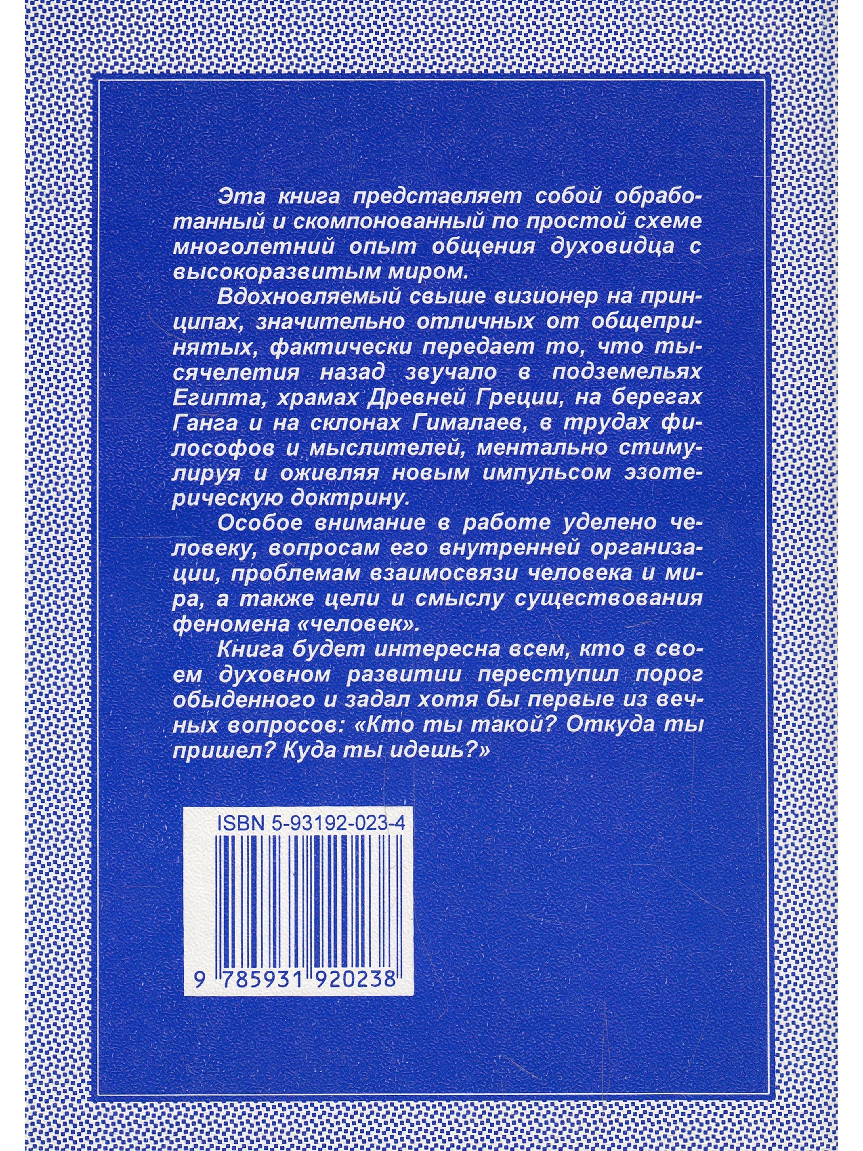Представленная работа предлагает мировоззренческую концепцию, в основу которой положен оригинальный визионерский опыт. Книга дает возможность по-новому взглянуть на внутренний мир человека, его взаимоотношения с окружающим.