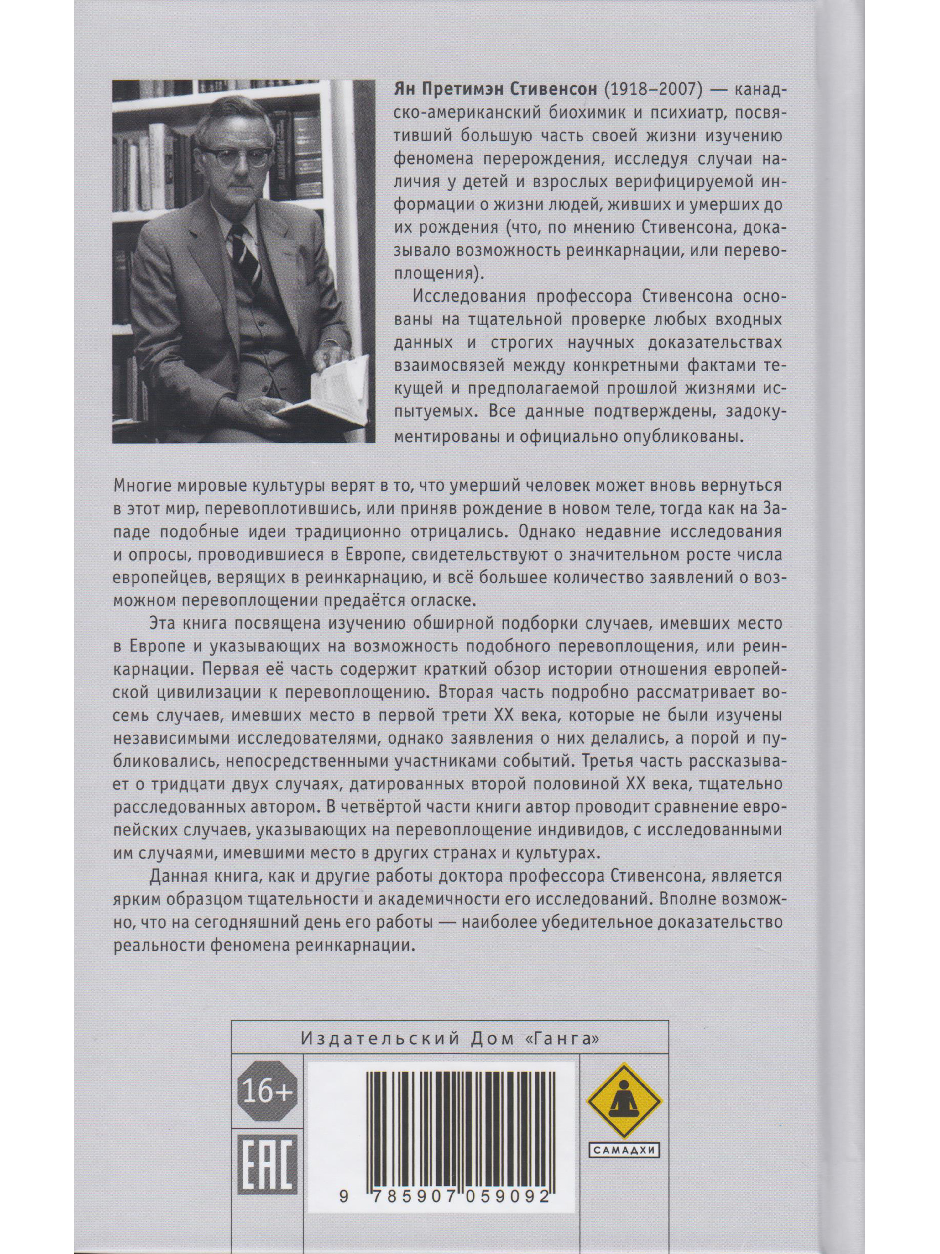 Эта книга посвящена изучению обширной подборки случаев, имевших место в Европе и указывающих на возможность подобного перевоплощения, или реинкарнации. Как и другие работы доктора профессора Стивенсона, она является ярким образцом тщательности и академичн