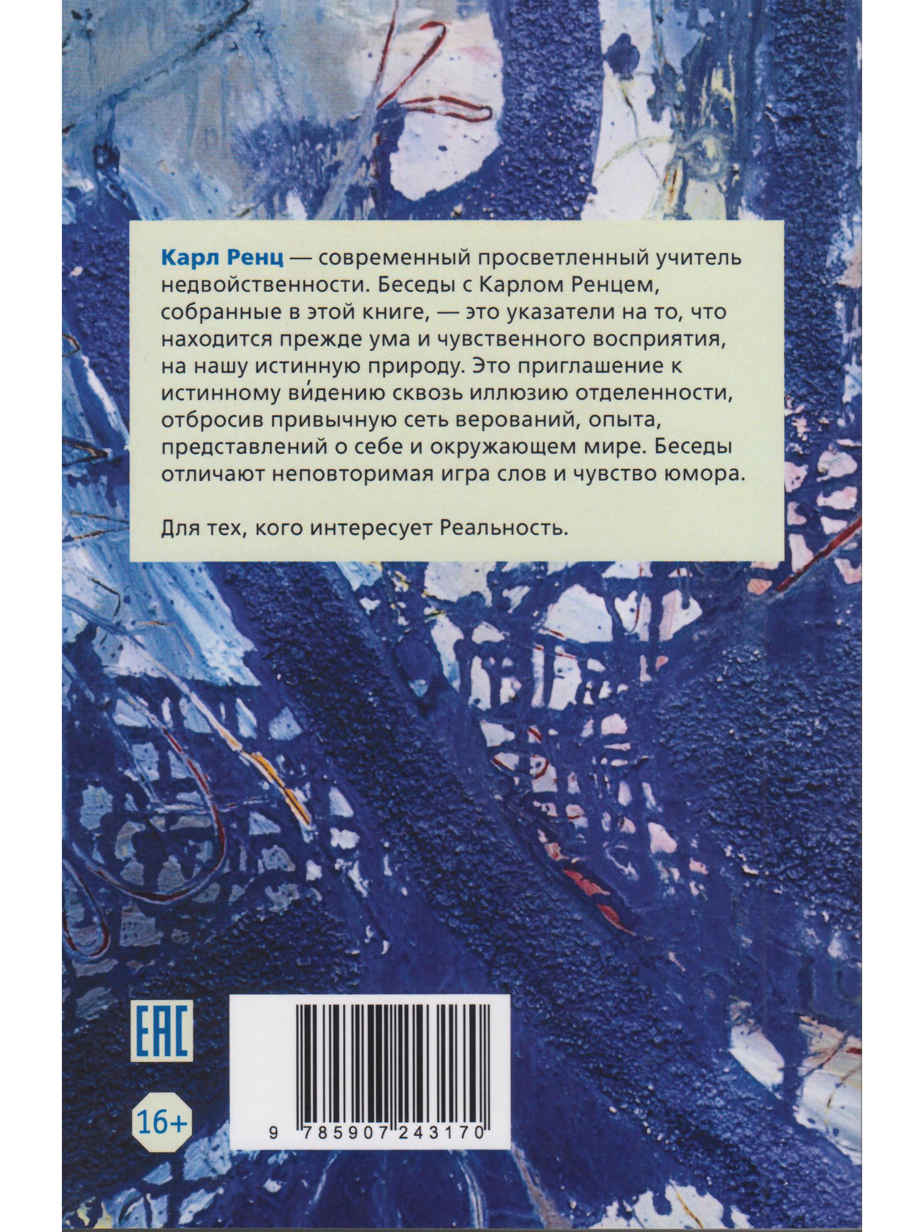 Карл Ренц - просветленный учитель недвойственности. Беседы с Карлом Ренцем, собранные в этой книге, - это указатели на то, что находится прежде ума и чувственного восприятия, на нашу истинную природу.