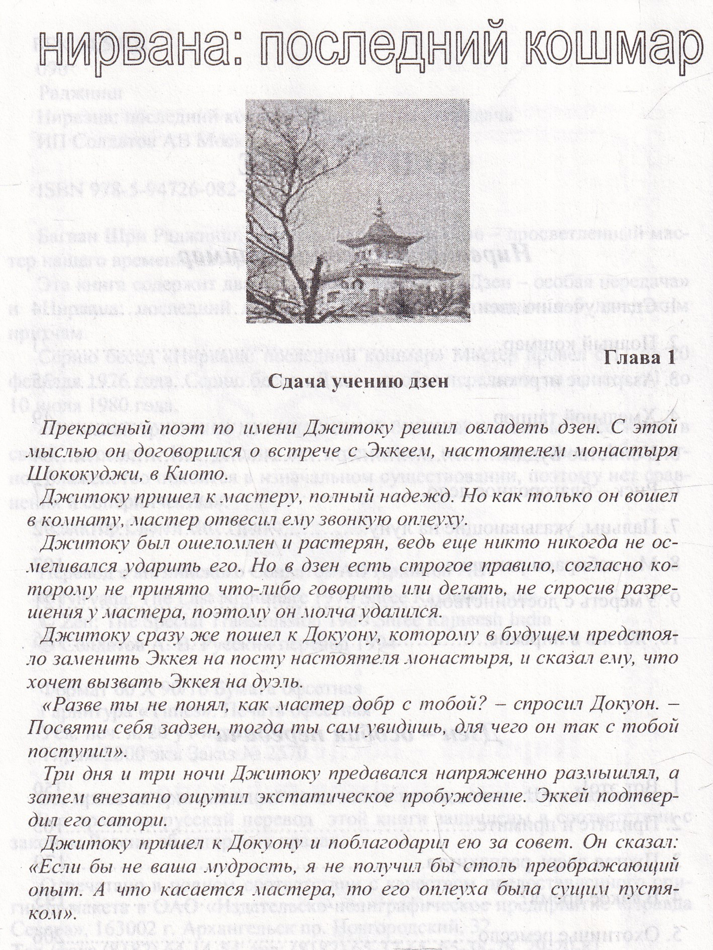 Багван Шри Раджниш, известный также как Ошо - просветленный мастер нашего времени, автор 350 книг. .Эта книга содержит два цикла бесед Мастера: "Дзен - особая передача" и "Нирвана - последний кошмар". Все беседы посвящены ...
