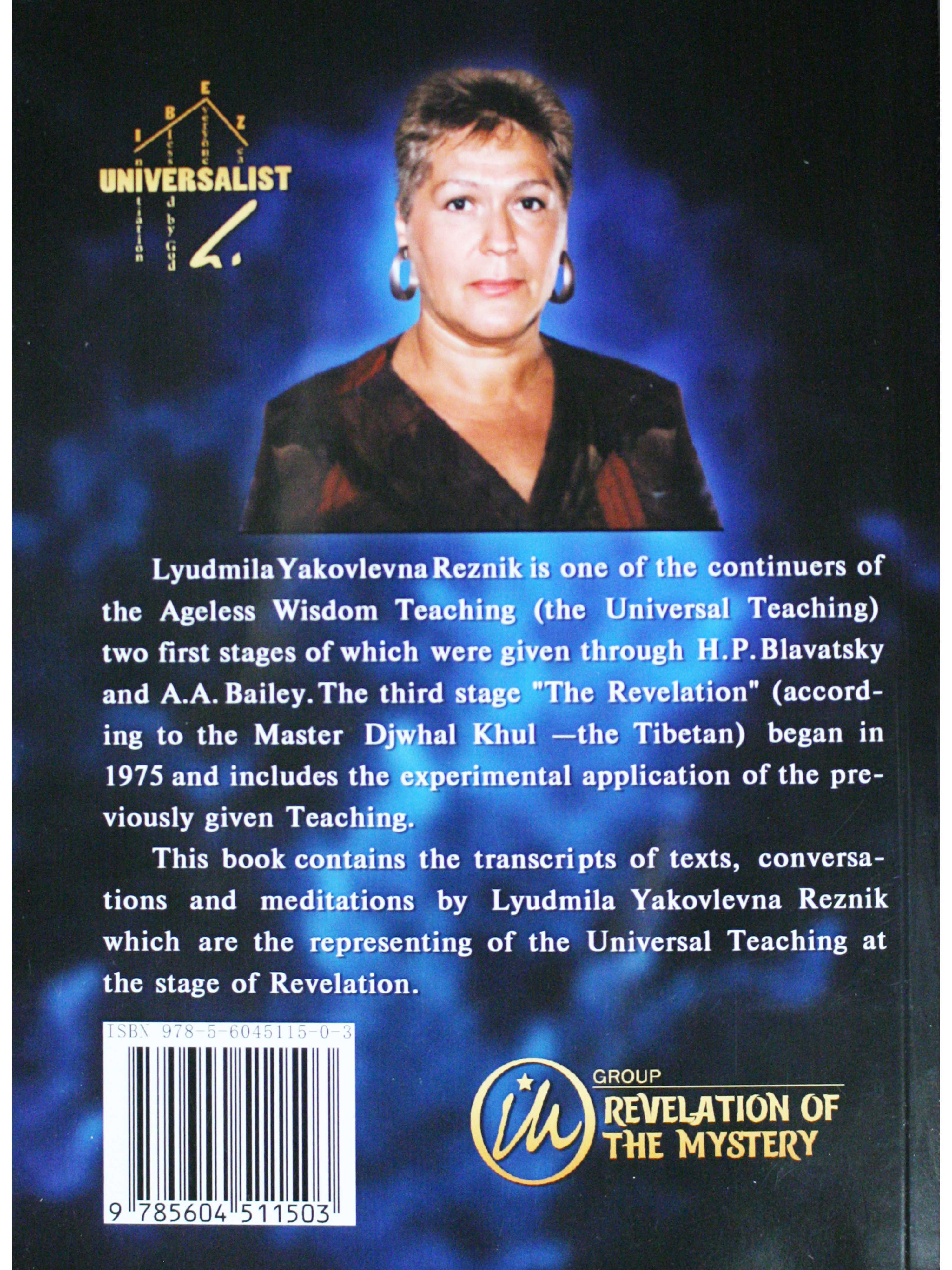 Перед Вами перевод на английский язык некоторых глав из серии книг «Откровение мистерии» Людмилы Резник. Здесь собраны документальные записи работ с группами, а также медитации и консультации, которые Людмила Резник проводила в разных частях России и за рубежом в период с 1984 по 2000 годы. Это уникальные материалы, раскрывающие практические аспекты духовной работы, основывающейся на Универсальном Учении, две стадии которого были выданы Учителями через Е.П. Блаватскую и Алису А. Бейли.