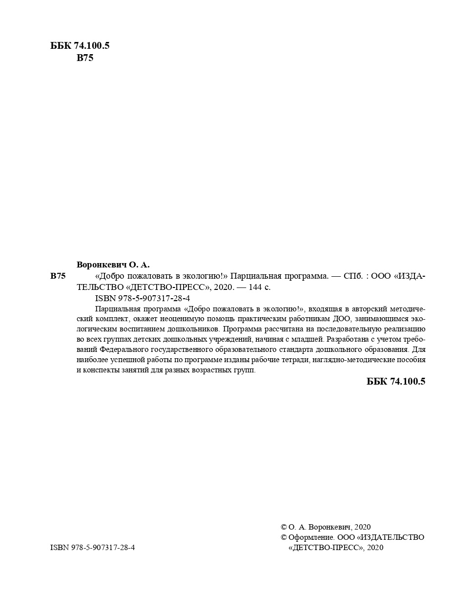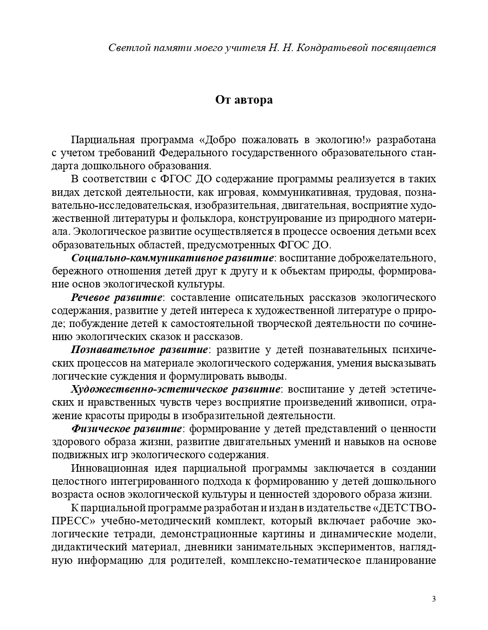 Парциальная программа «Добро пожаловать в экологию!», входящая в авторский методический комплект, окажет неоценимую помощь практическим работникам ДОО, занимающимся экологическим воспитанием дошкольников. Программа рассчитана на последовательную реализацию во всех группах детских дошкольных учреждений, начиная с младшей. Разработана с учетом требований Федерального государственного образовательного стандарта дошкольного образования. Для наиболее успешной работы по программе изданы рабочие тетради, наглядно-методические пособия и конспекты занятий для разных возрастных групп.