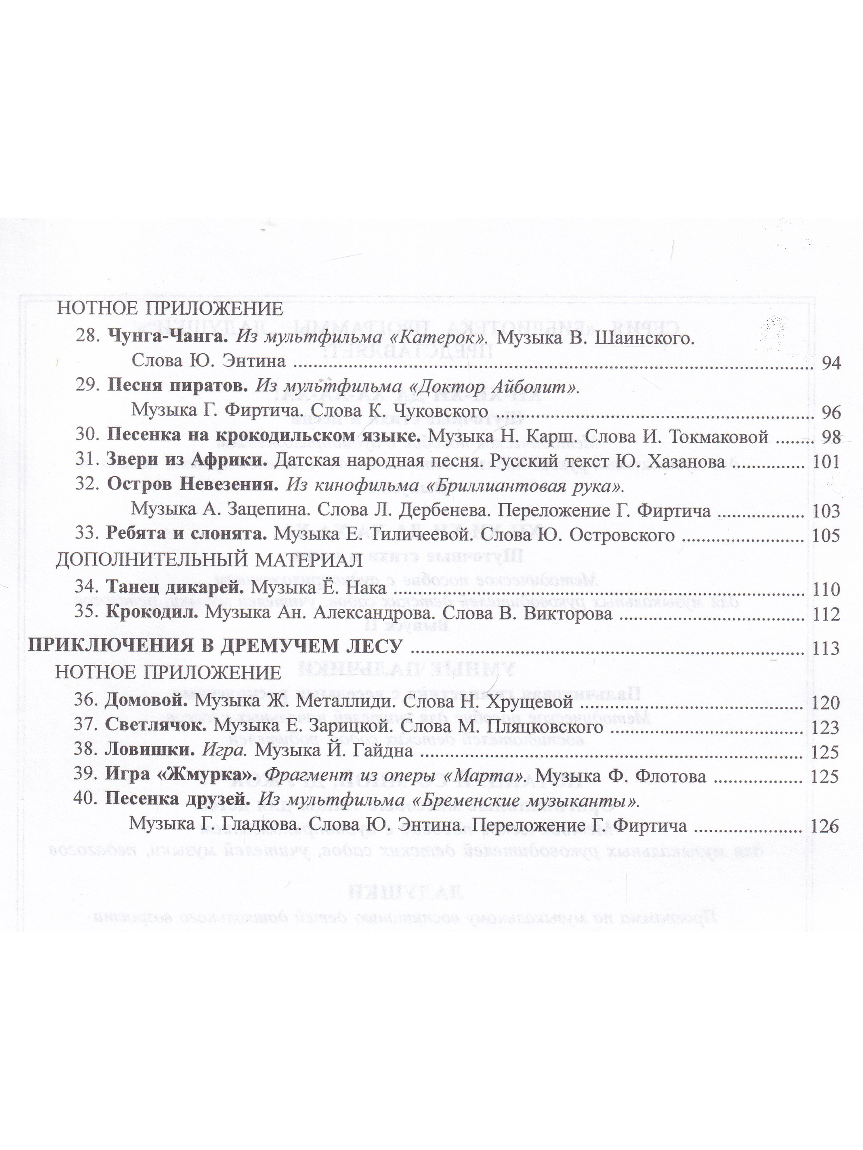 Содержание: "Космические приключения", "Поход в Гималаи", "Поход в Гималаи", "В гостях у Нептуна", "Приключения в дремучем лесу". Предлагаемые досуги отличаются большим количеством игр, эстафет, аттракционов, шуточных сценок. Все очень просто, интересно, увлекательно. К книге прилагаются 2 компакт-диска с очень красивой и совершенно необыкновенной музыкой. Книга яркая, цветная, ее надо рассматривать с детьми, к каждому "путешествию" имеются очень интересные вступительные статьи (сведения), которые нужно обязательно рассказать детям.
