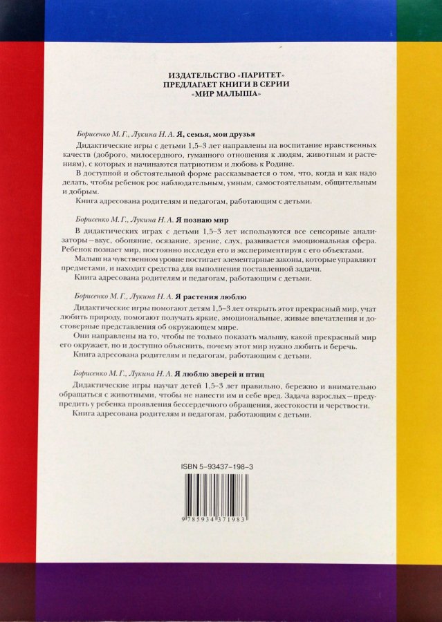 Дидактические игры помогают детям 1,5-3 лет открыть этот прекрасный мир, учат его любить природу, помогают получать яркие, эмоциональные, живые впечатления и достоверные представления об окружающем мире. Они направлены на то, чтобы не только показать малышу, какой прекрасный мир его окружает, но и доступно объяснить, почему этот мир нужно любить и беречь. Книга адресована родителям и педагогам, работающим с детьми.