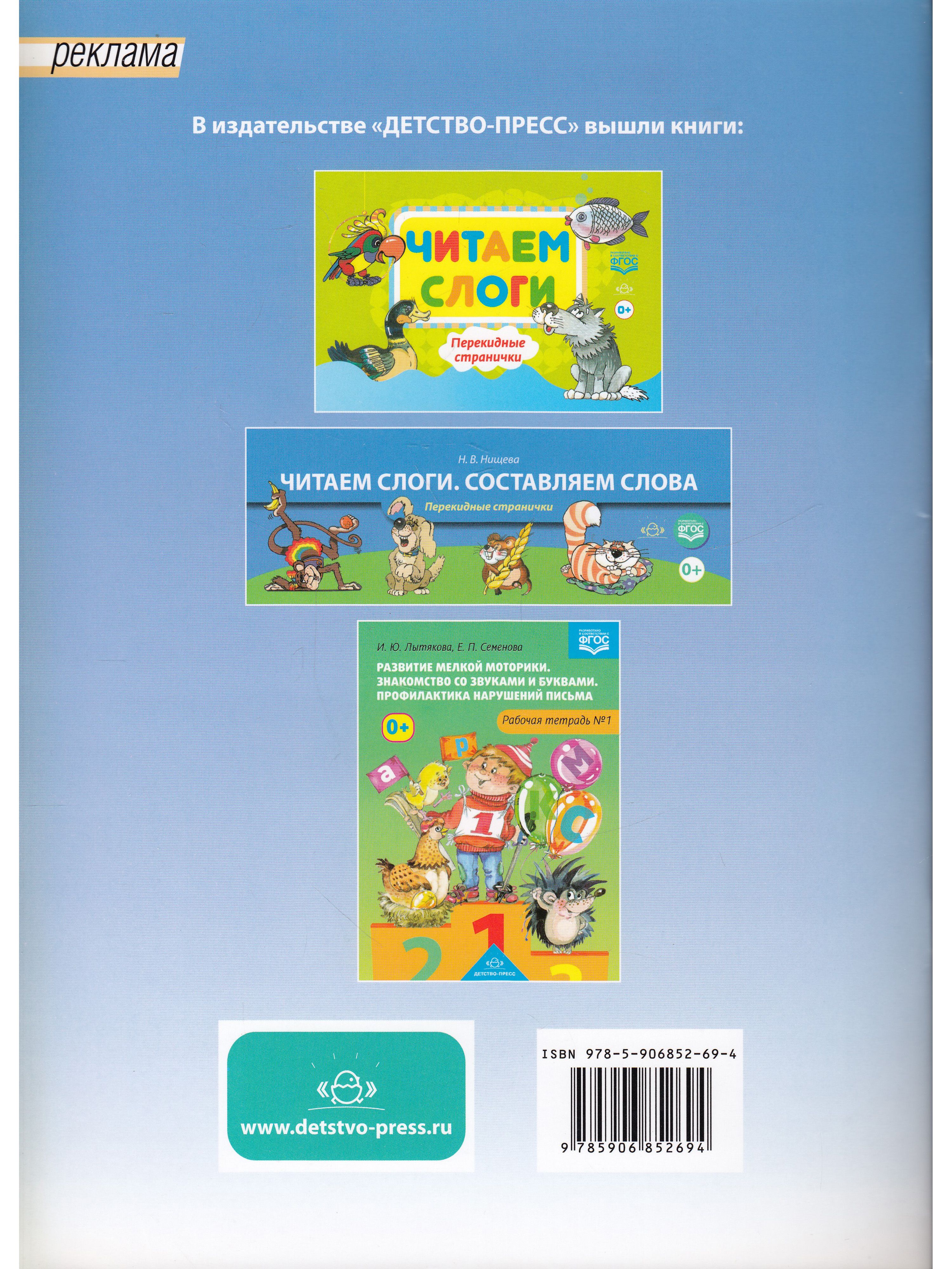Предлагаем вашему вниманию Рабочую тетрадь №2 из комплекта по профилактике нарушений пись-менной речи у детей дошкольного возраста. Тетрадь содержит увлекательные практические задания для старших дошкольников, направленные на развитие мелкой моторики, отработку знакомства со звуками и буквами, первичными математическими представлениями.Задания и указания по работе с Рабочей тетрадью вы найдете в нашем Методическом пособии, входя-щим в комплект.Комплект адресован логопедам, тифлопедагогам, дефектологам, воспитателям групп детских до-школьных образовательных организаций, рекомендован родителям старших дошкольников.
