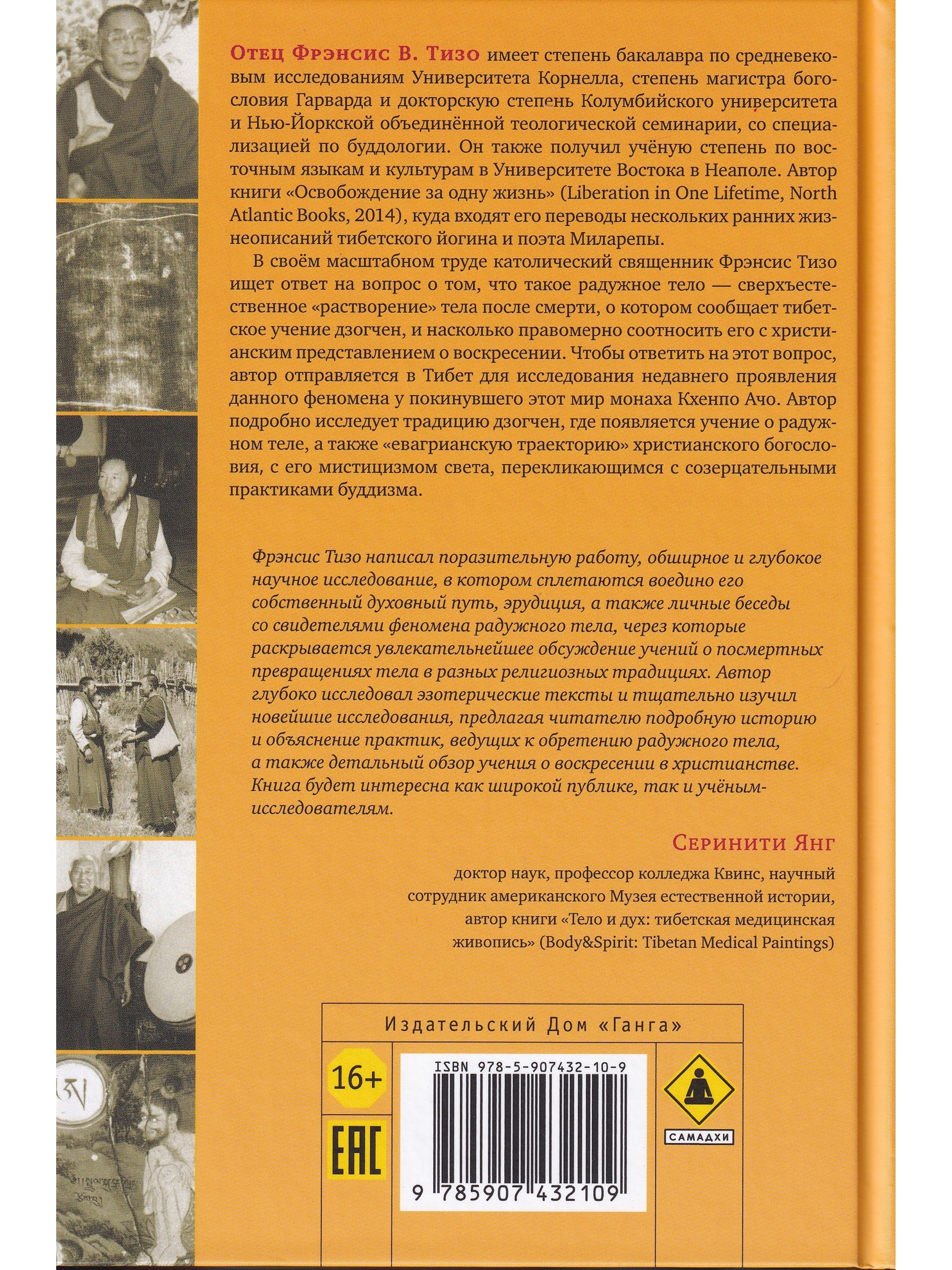 В своём масштабном труде католический священник Ф. Тизо ищет ответ на вопрос о том, что такое радужное тело — сверхъестественное «растворение» тела после смерти, о котором сообщает тибетское учение дзогчен, и насколько правомерно соотносить его с христианским представлением о воскресении. Чтобы ответить на этот вопрос, автор отправляется в Тибет для исследования недавнего проявления этого феномена у монаха Кхенпо Ачо.